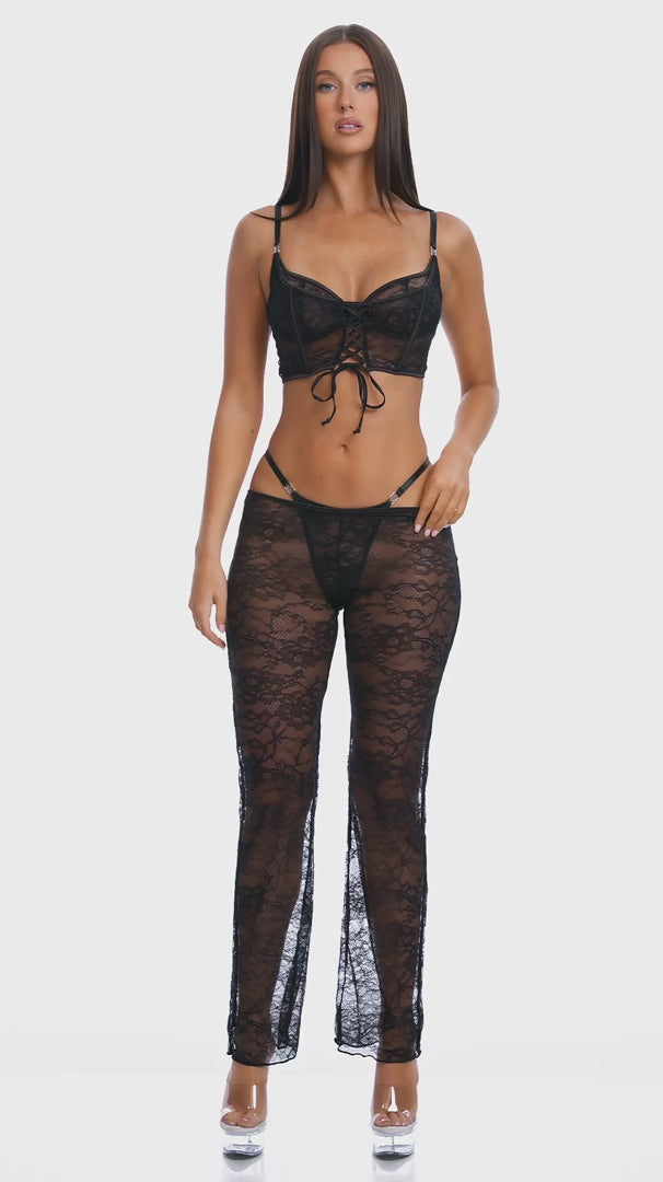 Layer of Seduction Layered Lace Longline Bra and Pants Set - Black
