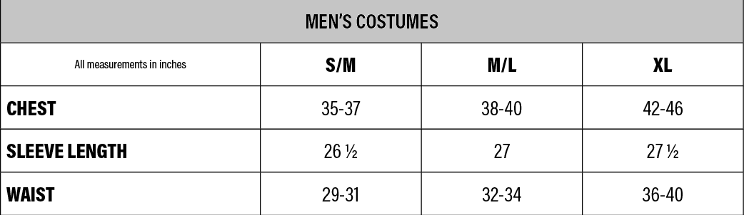 Costumes are not eligible for refunds. Costumes returned within 30 days of delivery date are accepted for exchange or store credit only.(View Full Return Policy)