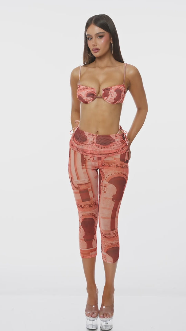 Poolside Cabana Renaissance Print Coverup Capris - Orange
